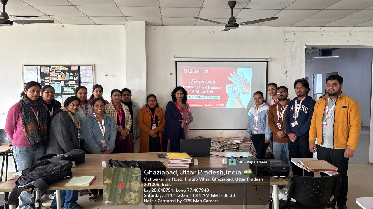 The Department of Biochemistry at Santosh Medical College & Hospital organized a vibrant event to mark Global Handwashing Day, emphasizing the theme “Handwashing is the Hero.” Recognizing hand hygiene as a simple yet powerful tool to prevent infections, the program aimed to translate theoretical knowledge into practical, life-saving habits among students and staff.